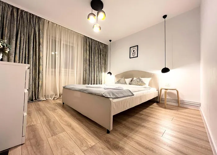 Als u een vroege vlucht hebt vanaf Constanţa, ligt 1-slaapkamer Aparthotel Anastasia op 30 km van Mihail Kogalniceanu. Dit appartement van 55 m^2 biedt uitzicht op de tuin.